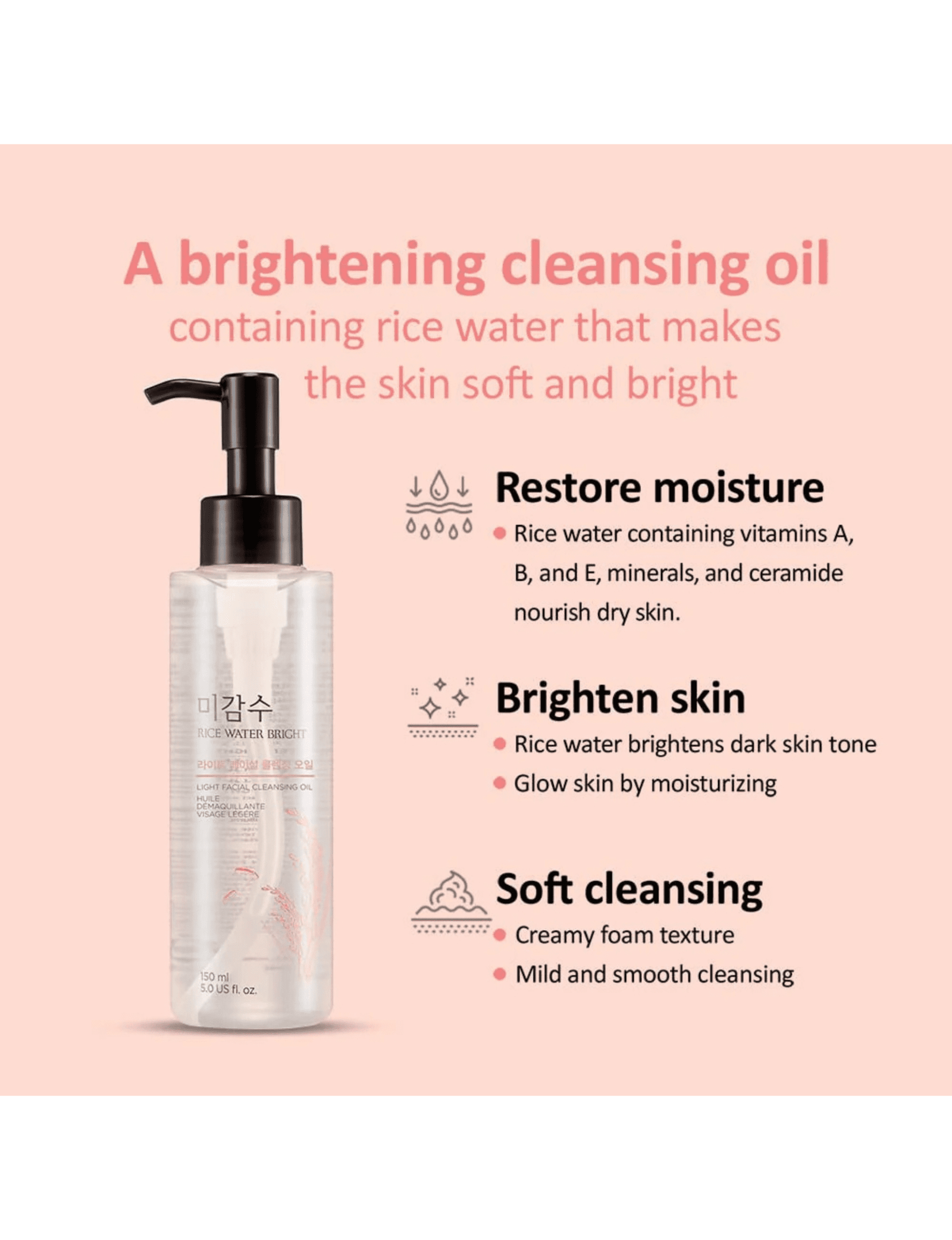 এটি একটি লাইটওয়েট ক্লিনজিং অয়েল যা মেকআপ, সানস্ক্রিন ও ময়লা কোমলভাবে দূর করে, ত্বককে সতেজ ও উজ্জ্বল রাখে। এতে রয়েছে Rice Water Extract যা প্রাকৃতিকভাবে ব্রাইটনিং করে ও আর্দ্রতা ধরে রাখে। হালকা অয়েল টেক্সচার দ্রুত শোষিত হয় এবং ত্বকে কোনো ভারী ভাব বা তৈলাক্ততা ফেলে না।