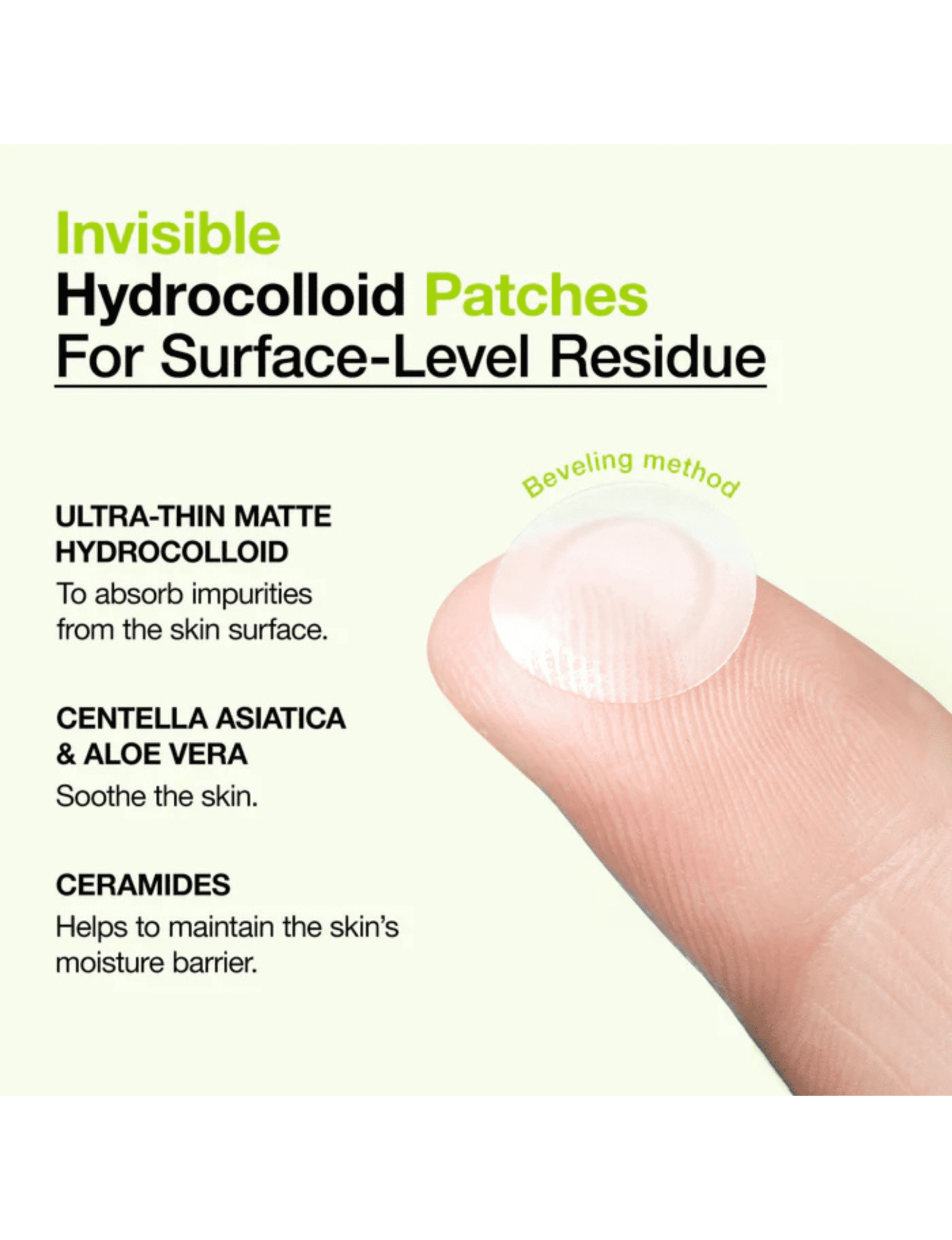 এটি একটি আল্ট্রা-থিন স্পট কভার প্যাচ যা ব্রণ বা পিম্পলকে ঢেকে রাখে, বাইরের ধুলো-ময়লা ও ব্যাকটেরিয়া থেকে সুরক্ষা দেয় এবং দ্রুত হিলিং-এ সহায়তা করে। পাতলা টেক্সচার ত্বকে প্রাকৃতিকভাবে মিশে যায়, মেকআপের নিচেও অদৃশ্য থাকে এবং সারাদিন আরামদায়কভাবে ব্যবহার করা যায়।