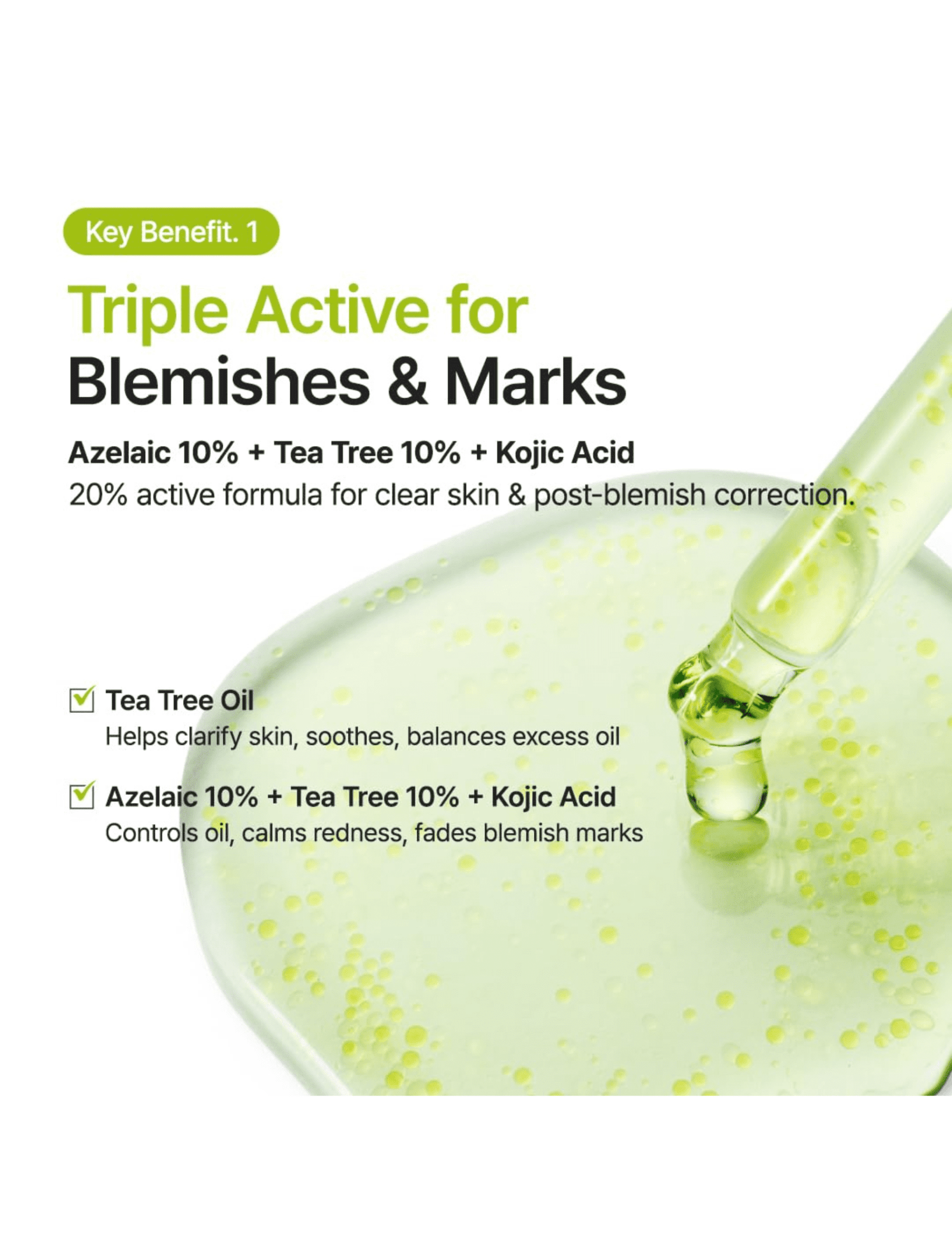 এটি একটি অ্যান্টি-অ্যাকনে ও ব্রাইটেনিং সেরাম যা ব্রণ, অতিরিক্ত তেল এবং ইনফ্লেমেশন কমায়। এতে রয়েছে Azelac Acid (10%) যা হাইপারপিগমেন্টেশন হালকা করে, পোরস কমায় এবং ত্বকের টেক্সচার উন্নত করে। এছাড়াও Tea Tree Extract ব্রণ নিয়ন্ত্রণ করে ও ত্বককে শান্ত করে। Niacinamide ও Panthenol ত্বককে হাইড্রেট করে, রঙ সমান করে এবং স্কিন ব্যারিয়ারকে শক্তিশালী করে।
